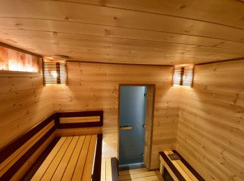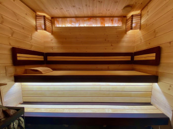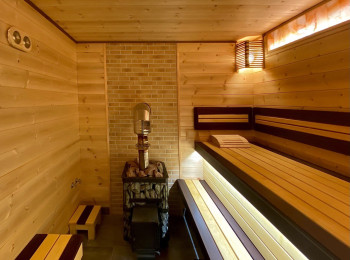 Монтаж вентиляции. Гильзование печной трубой каменного дымохода 12 м. Полок и панно из гималайской соли с сопровождением светодиодной ленты.