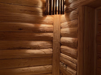 - Материал потолка: Липовый блок-хаус с лыком